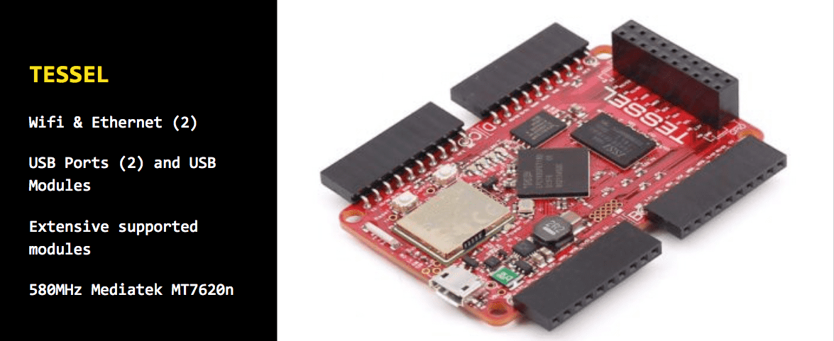 Another great example of a prototyping system that supports Javascript development is the Tessle, providing a neat NPM package and CLI for writing node.